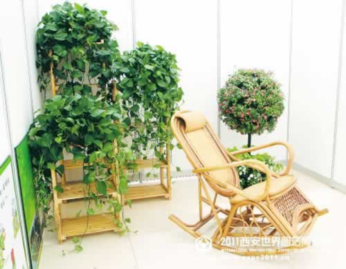 图为立体绿化展中放在竹架上的常青藤。(记者 王晓林 实习生 李学东 摄)