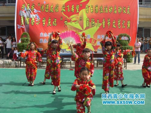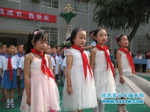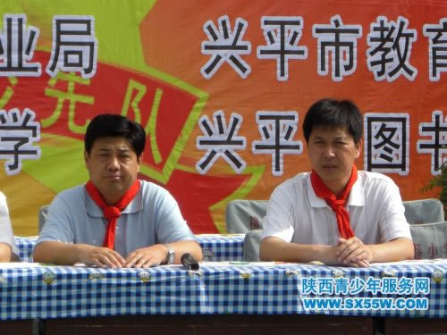 李霁校长与上级领导观看六一文艺汇演。左为兴平市教育局张文辉局长,右为兴平市槐巷小学李霁校长