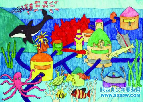 科幻画《海底旅馆》