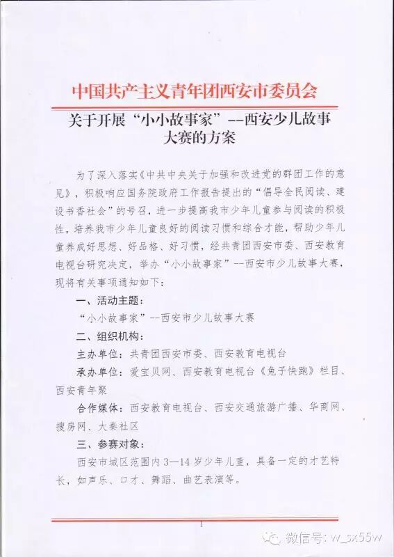 “小小故事家”西安少儿故事大赛等你参与为进一步提高西安市少年儿童参与阅读的积极性,培养少年儿童良好的阅读习惯和综合才能,帮助少年儿童养成好思想、好品格、好习惯,团市委、西安教育电视台决定联合举办“小小故事家”西安市少儿故事大赛。