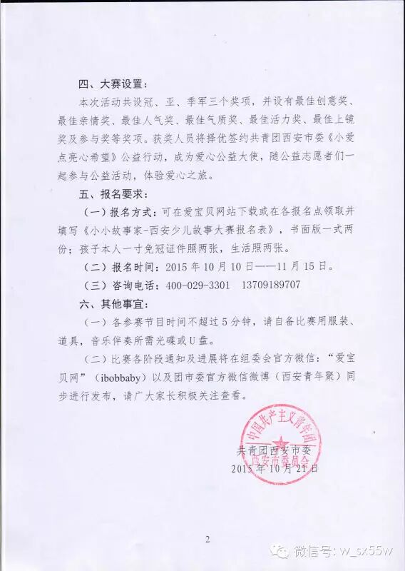 2、须准备孩子本人1寸免冠彩色照片2张,生活照2张,交于西安科技报高老师处。(地址:南二环西段118号安馨园大厦15F)(截止时间:2015年11月15日)