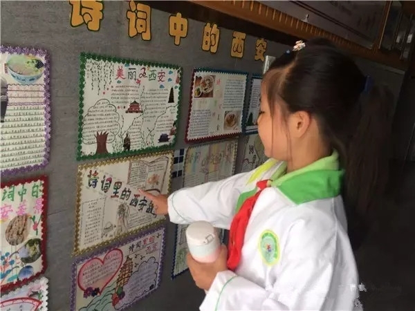 本刊讯 在《2017年大西安城市形象对外宣传实施方案的通知》文件精神引领下,9月21日,西安市未央区大明宫小学巧妙地挖掘校园文化中的深刻内涵,开展了一系列符合小学生特点的活动,让同学们通过诗词里的西安故事、诗词里的西安景色、诗词里的西安美食等方面,走近西安、了解西安。学校的主题展示栏中,同学们制作的一张张手抄报色彩纷呈、特点鲜明,美食照片、美景素描,儿童画风、青花瓷风,让文字和画面的碰撞出流露出吸引,让诗句与故事的祭奠中埋藏着感动。