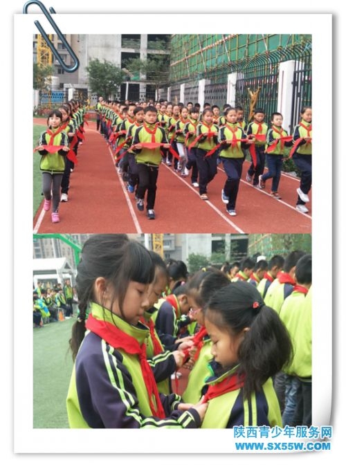 ——为贯彻党的教育方针,迎接十九大的召开。雁塔区双水磨小学举行中国少年先锋队建队68周年,红领巾 我为你自豪少先队入队仪式