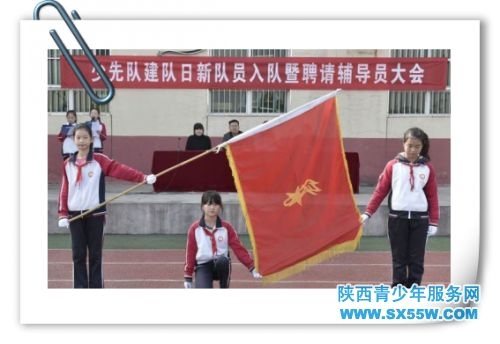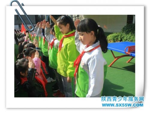 9:西安国际港务区水流中心小学在操场上举行了新队员入队暨聘请辅导员大会。