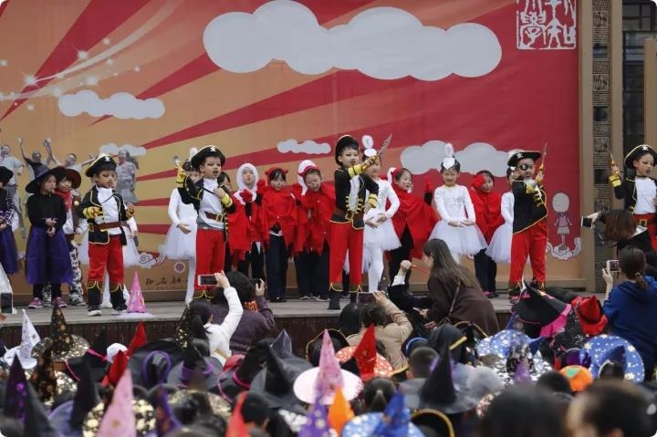 本刊讯 10月30日,西安新知小学迎来了第十三届英语节——万圣节主题狂欢活动。超人、蝙蝠侠、僵尸、鬼怪、精灵、巫师、法老、公主……学生们期待已久的万圣节狂欢活动在一阵“群魔乱舞”中热闹开始。接下来是各个年级的精彩节目:有街舞、有英语话剧当然也有歌舞表演等,让全体师生目不暇接,高兴不已。伴随着歌舞《Go Away》,全体英语老师上台致敬,新知小学第十三届英语节狂欢派对顺利结束。通过此次活动让学生们不仅了解有趣的“Trick or treat”,还知道了南瓜雕空当灯笼的故事。也提高了学生对学好英语语言的积极性。 (本刊记者 周燕)