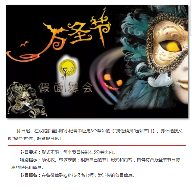 【报名咯】万圣节“假面狂欢”特别活动即将开启!