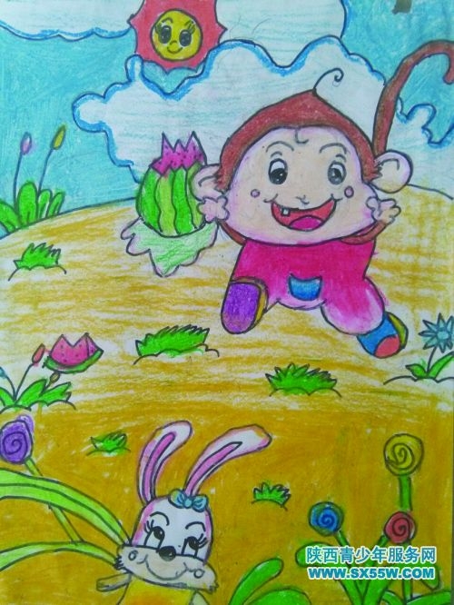 《快乐的小猴子》 作者:作者:雁塔区燎原小学四年级三班 张佳佳 指导老师:刘延军