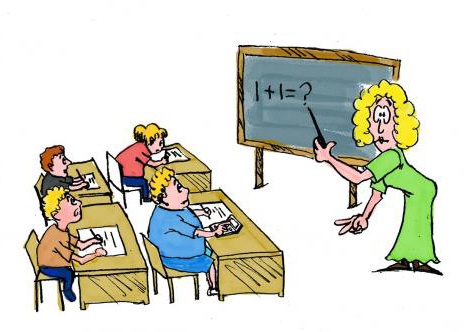 老师:“今天我们来学减法。比方说,你哥哥有5个苹果,你从那儿拿走3个,结果怎样。”