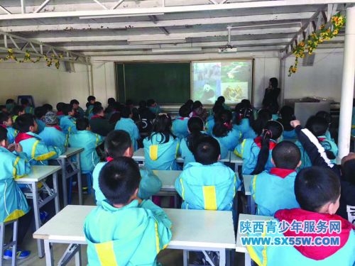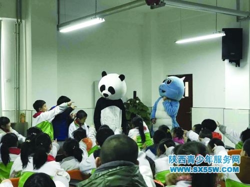 长颈鹿、河马、狮子、大象、孔雀……西安秦岭野生动物园的李爽老师一边讲解,一边展示图画,学生们仿佛走进了大森林……可爱的熊宝和萌萌的恐龙妹来到教室与学生们见面,学生们兴奋不已;我和虎宝的约会,孩子们玩起了“你比划我来猜”的游戏。