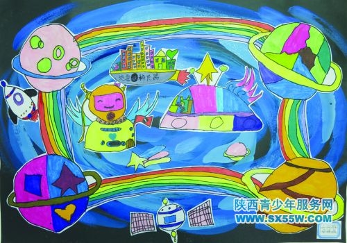科幻画《地震移民器》 作者:西安电子科技大学附属小学三(7)班 安婧媛
