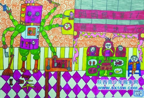 科幻画《妈妈不累了》 作者:西安电子科技大学附属小学三(8)班 李佳蕾