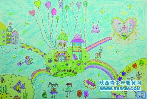 科幻画《太空家园》 作者:西安电子科技大学附属小学二(3)班 高雨涵