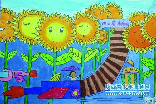 科幻画《向日葵加油站》 作者:西安电子科技大学附属小学二(4)班 李书涵
