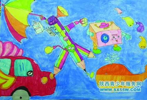 科幻画《万能铅笔》 作者:西安电子科技大学附属小学一(6)班 董玥辰