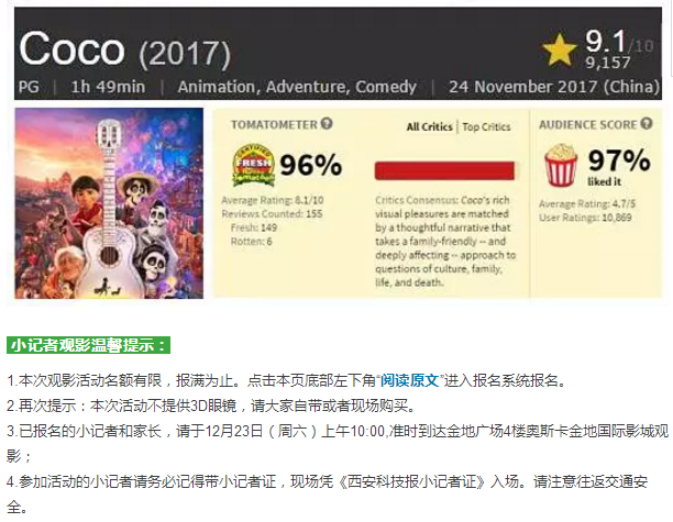 免费观影 | 本周六小记者相约奥斯卡,观影《寻梦环游记》