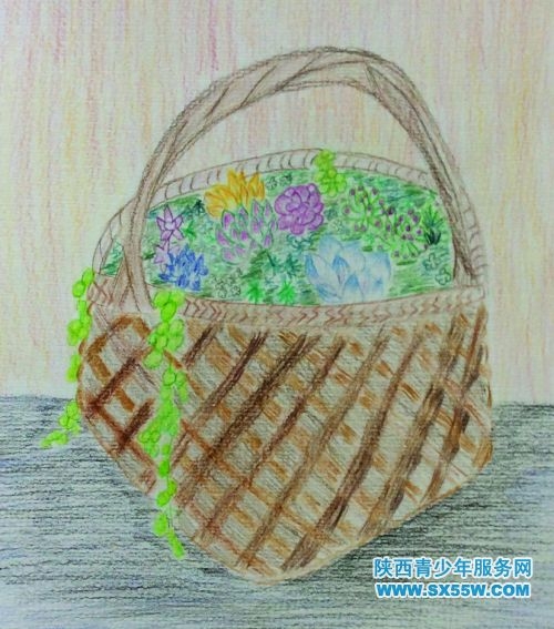 《竹篮里的多肉》 作者:西安黄河实验小学庞晓钰