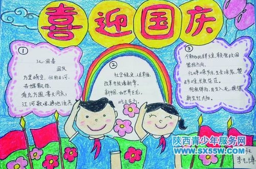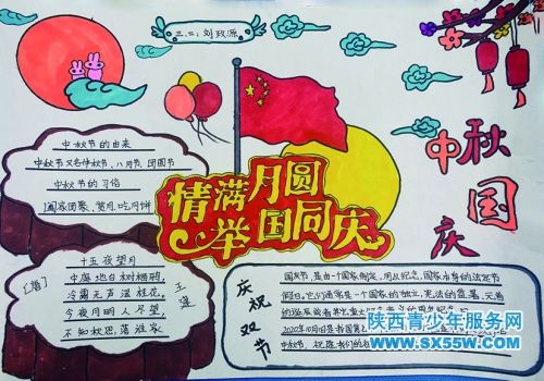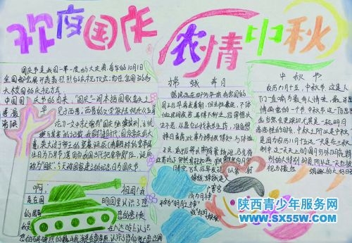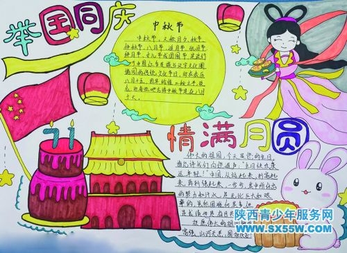 莲湖区南小巷小学三年级二班 《迎双节》手抄报选登