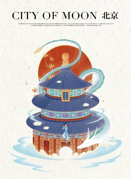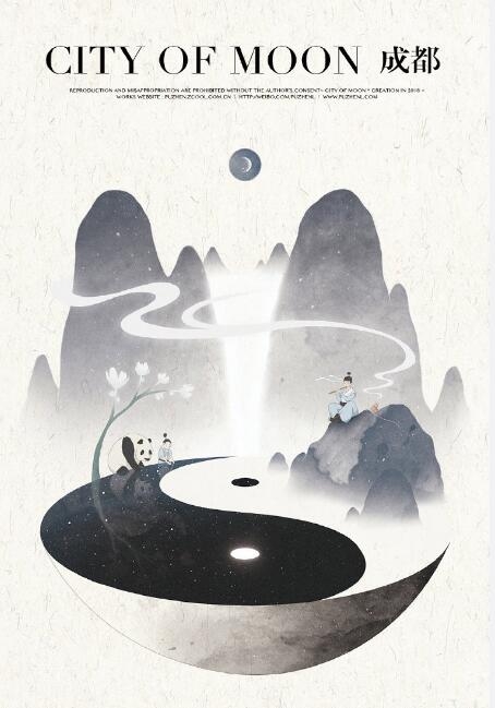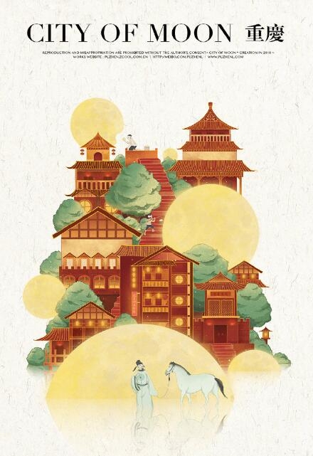 重庆设计师朴缜以月为引,画了一组名为《东方幻月录》的中国城市系列绘卷。他将各个城市的人文风貌和历史典故结合在一起,为每个城市都打上了独特的印记。