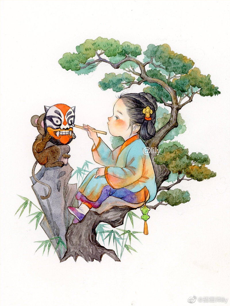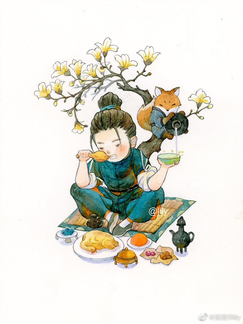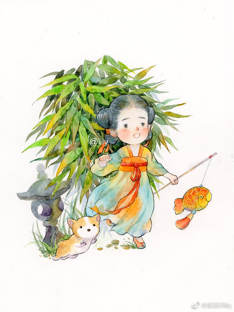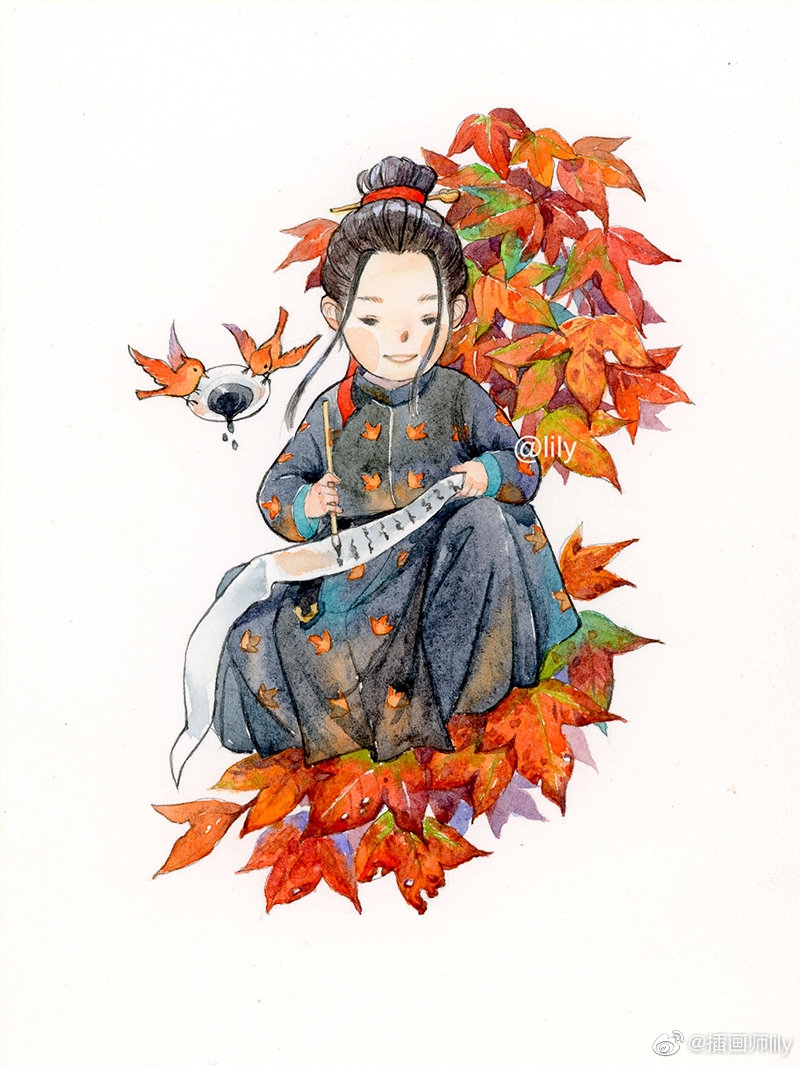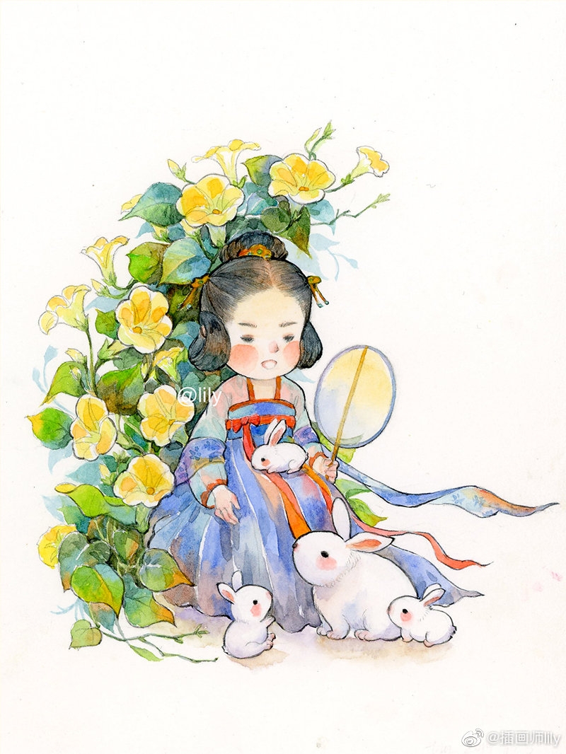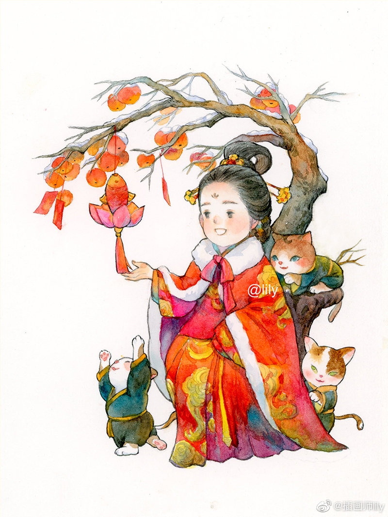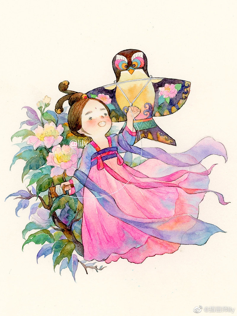 制式多样、色彩斑斓的汉服,穿在呆萌的“小可爱”们身上,还有中国的传统物品,再搭配上各季的花草树木,以及围绕在“小可爱”身边的动物,一幅幅独具中国特色的水彩画,将中国的传统文化以这样生动有趣的方式表达。(作者:插画师lily)
