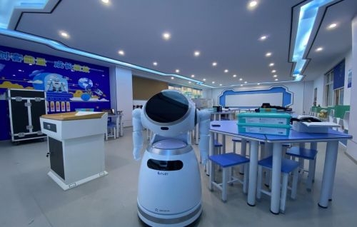 创客社团还配有VR课程。一个个造型可爱、憨态可掬、科技感与人工智能技术集合机器人让学生感受不同形式不同场景下人工智能成果,体验到科技对学习和生活的改善,激发学生学习科学的浓厚兴趣。